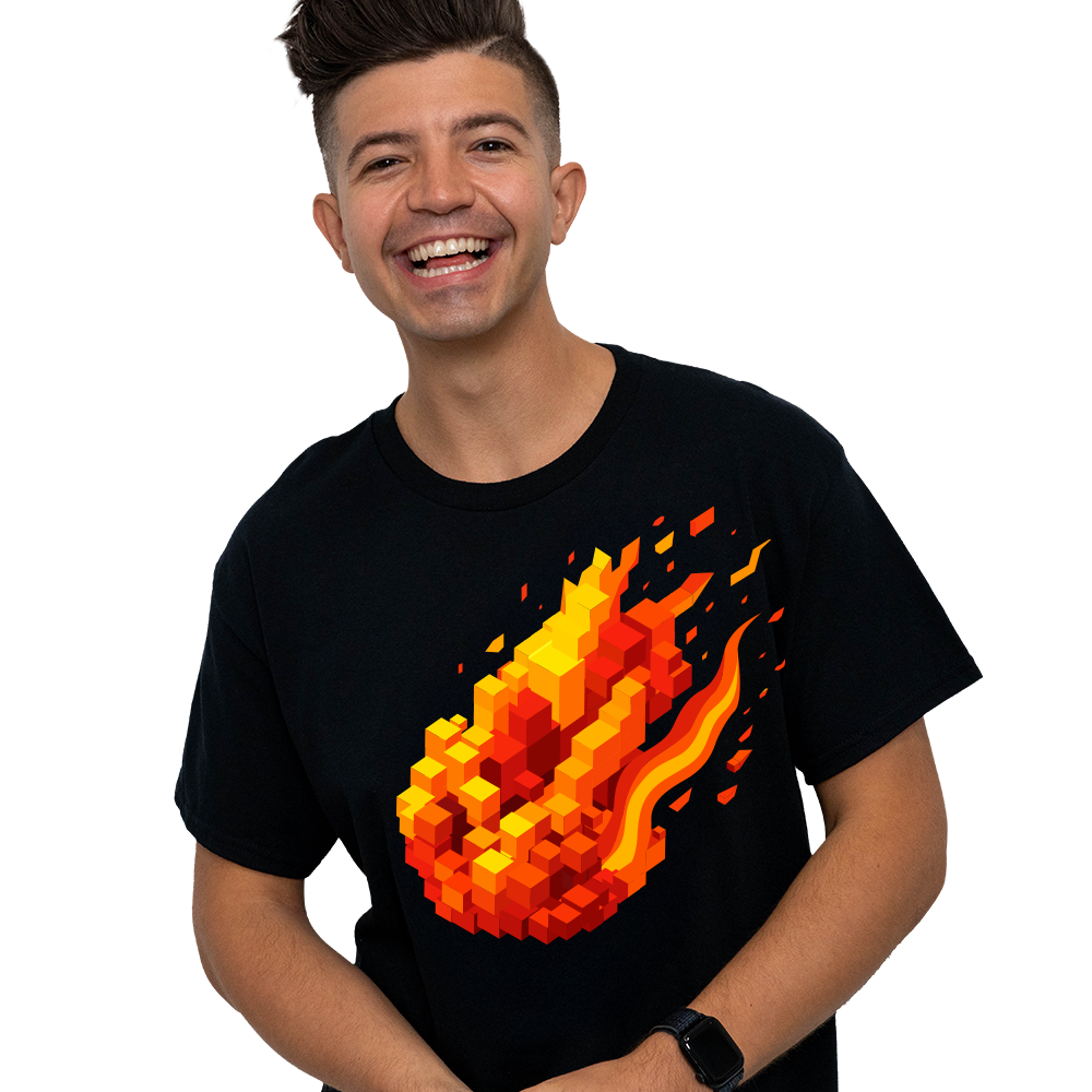 This must-have black tee features a bold design of red, orange, and yellow 3D blocks stacked perfectly into Preston’s signature flame logo—a fiery nod to his Minecraft roots and iconic merch style. Whether you’re heading back to school, hanging with friends, or showing off your love for PrestonPlayz, this limited-edition Lava Block T-Shirt is the ultimate fan fit!